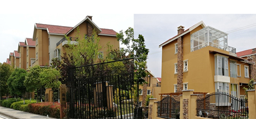 位于太平新城的云报记者村别墅外墙采用外墙纤维抗裂腻子粉和水泥基抗裂外墙腻子粉。
