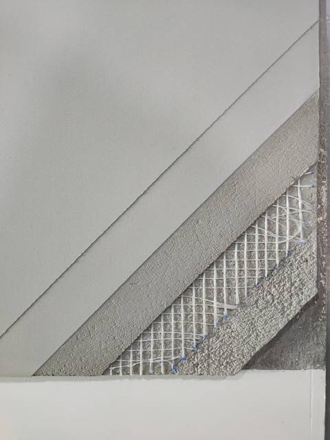 4、在第三步完成的基础上涂刷抗裂砂浆,等其干燥后再挂抗碱网格布,最后再格布的基础上涂刷一遍抗裂砂浆即可。