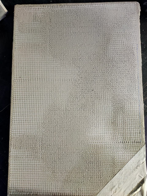 4、在第三步完成的基础上批刮聚合物抗裂砂浆,接着挂网格布,最后再格布的基础上批刮一遍抗裂砂浆(抗裂砂浆尽量批刮平整,方便批刮腻子)。