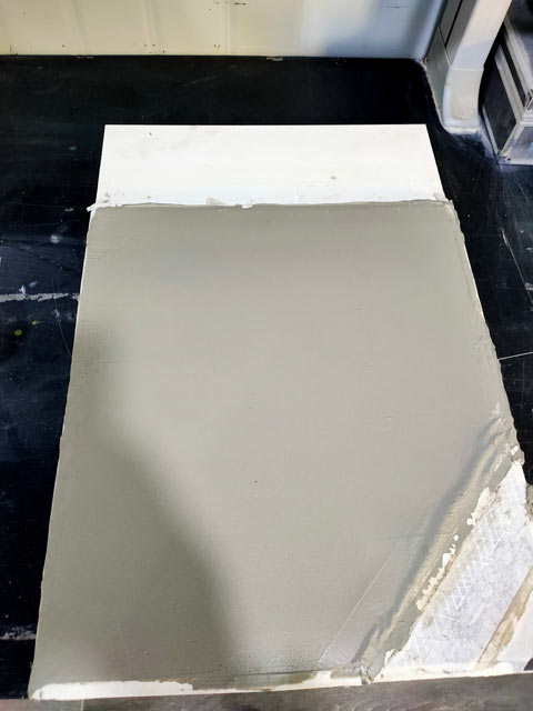 2、把界面剂按照规定比例搅拌均匀,并且均匀涂刷在硅钙板上(界面剂推荐使用双组份界面剂;界面剂涂刷24小时方可进行下一工序)。