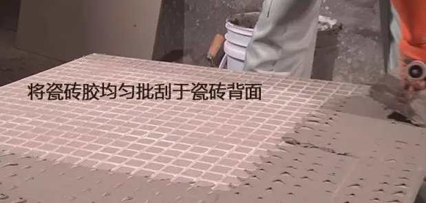 与水泥砂浆铺贴不同的是,用瓷砖胶铺贴时,瓷砖及基面无需浸泡和湿润,只需在基面用抹灰刀,将瓷砖胶薄批1道约1至2mm毫米的胶层,以增强与基面的接触效果,紧接着厚批瓷砖胶1道,并用合适规格的锯齿镘刀,将瓷砖胶梳理成均匀的线条状。