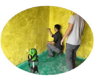外行看装修图时可能会有这样的疑问,?墙上黄色的、地上绿色的是什么?是涂的防水吗?其实这就是墙固和地固,墙固一般是黄色的,地固是绿色的,蓝色红色也有。