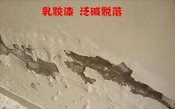 泛出的碱一般是白色的,因此当漆是白色或浅色时,即使出现泛碱从外观看是很难发现的,往往颜色越深外观的差别就越明显。有时泛碱会是黄色的,水将水泥中的色索带出所致。