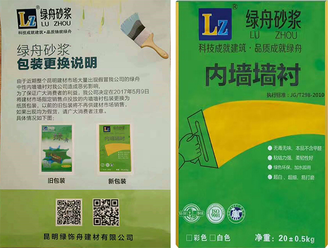 现在各大建材市场也改换成新的包装,跟老包装不同的是现在采用的袋子是纸包装,也显示出更高级更环保的形象。