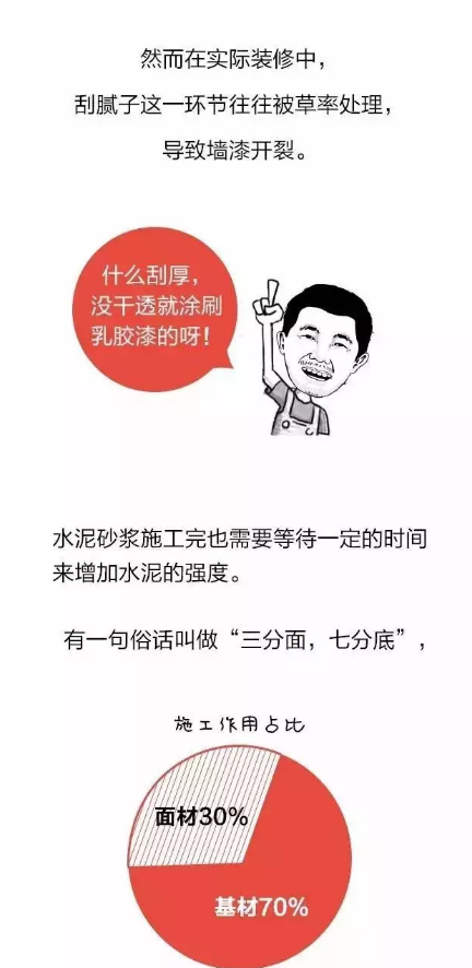 2)成品腻子是依据合理地原材料配比、机械化方式生产出来的,避免了传统工艺中当场配比造成的差错以及品质得不到保证的问题。相对性环保一些,无毒无味,甲醛、苯、二甲苯以及挥发性有害物控制在标准范围内,兑水即用,操作方便,加工工艺简单。