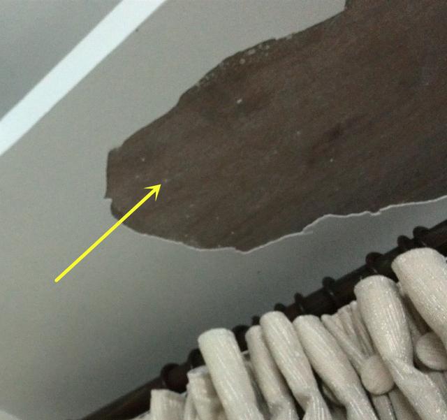 经过专业师傅的检查后,发现原来我家吊顶腻子大面积掉落的原因就是:施工的工人没有给顶面清洁干净就开始刮涂腻子,导致腻子掉落!