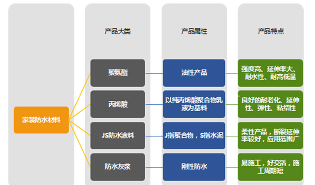 ? 家装方面的防水是指和家庭生活相关的防水常识、防水材料和防水技术的统称。包括但不限于屋面、卫生间、阳台、外墙、厨房、地下室、游泳池的防水等位置的防水防潮处理。这个细分领域正在初步成型,施工要求相对较低,大众化,实用。