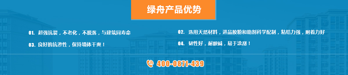 产品特点:选用天然材料,进口胶粉和助剂科学配制,粘结力强,附着力好,易施工,抗龟裂,耐水,耐老化,抗渗防潮,是现代建筑外立面理想的基层找平材料
