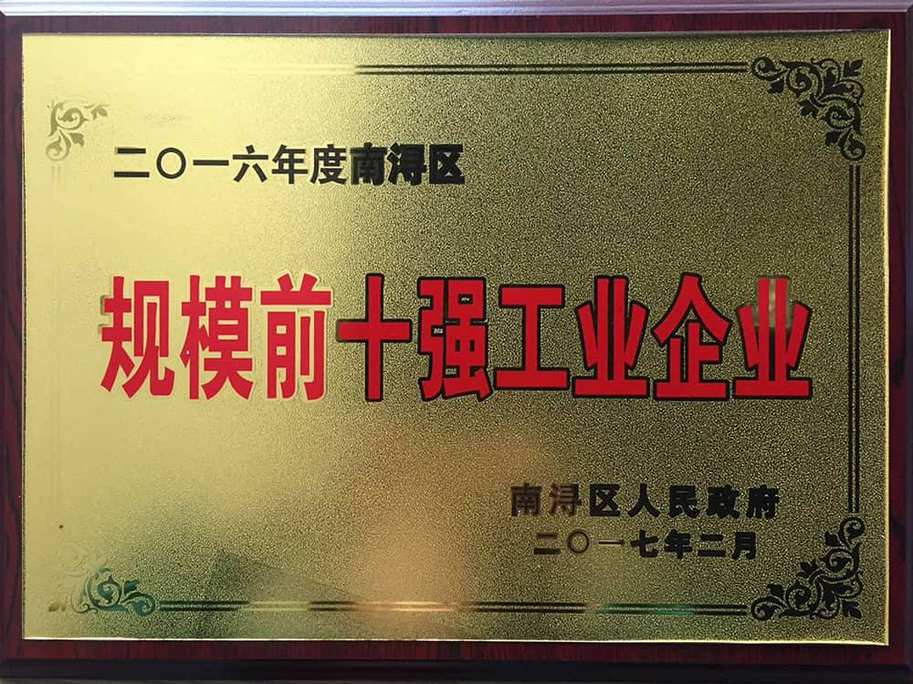 2016年度南浔区规模前十强工业企业