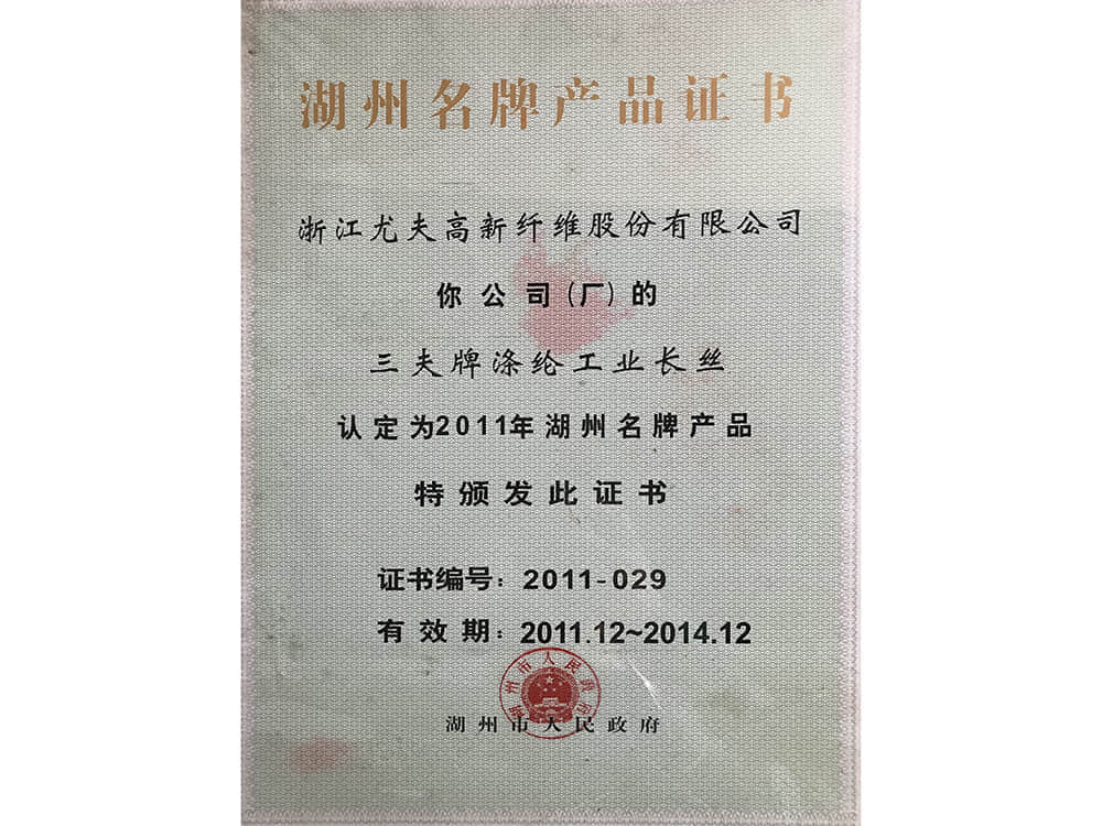 湖州名牌产品证书2011
