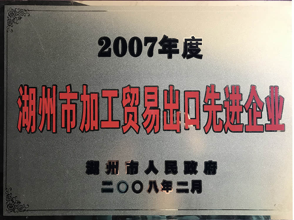2007年度湖州市加工贸易出口先进企业