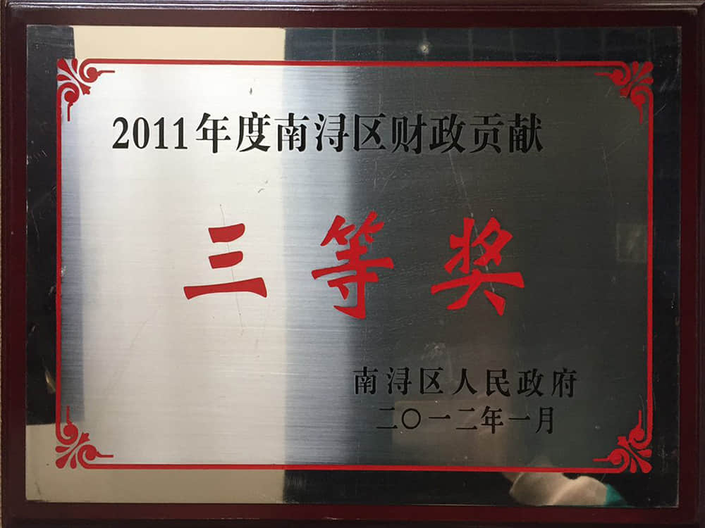 2011年南浔区财政贡献奖三等奖