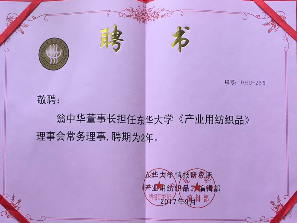 2017东华大学产业用纺织品理事会常务理事单位