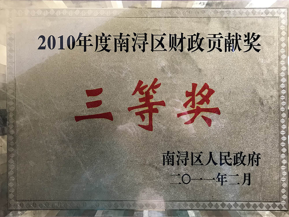 2010年度南浔区财政贡献奖三等奖